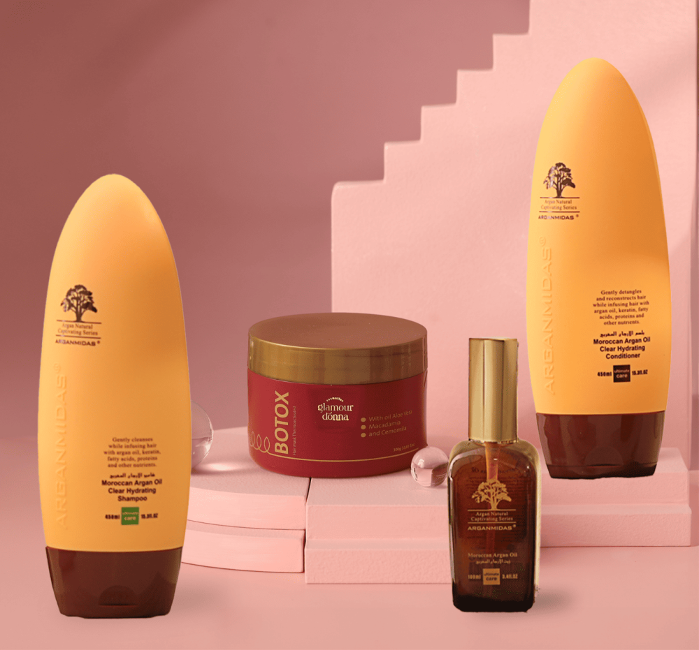 - شامبو وبلسم غنيان بزيت الأرغان لترطيب الشعر وتنظيفه بلطف